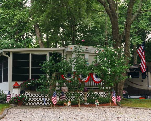 Nous roulons quelques heures jusqu’au premier terrain de camping que nous avions réservé. C’est là, et au cours des jours qui suivent, ainsi qu’au cours des quatre voyages subséquents que nous effectuerons aux États-Unis, que je constate que ce qui n’a pas changé, ce sont ces manifestations ubiquitaires de patriotisme… des drapeaux partout, sur le gazon, plantés devant les véhicules motorisés ou les roulottes dans les campings, accrochés sur les auvents, collés sur toutes sortes de surface, et pas seulement des drapeaux.