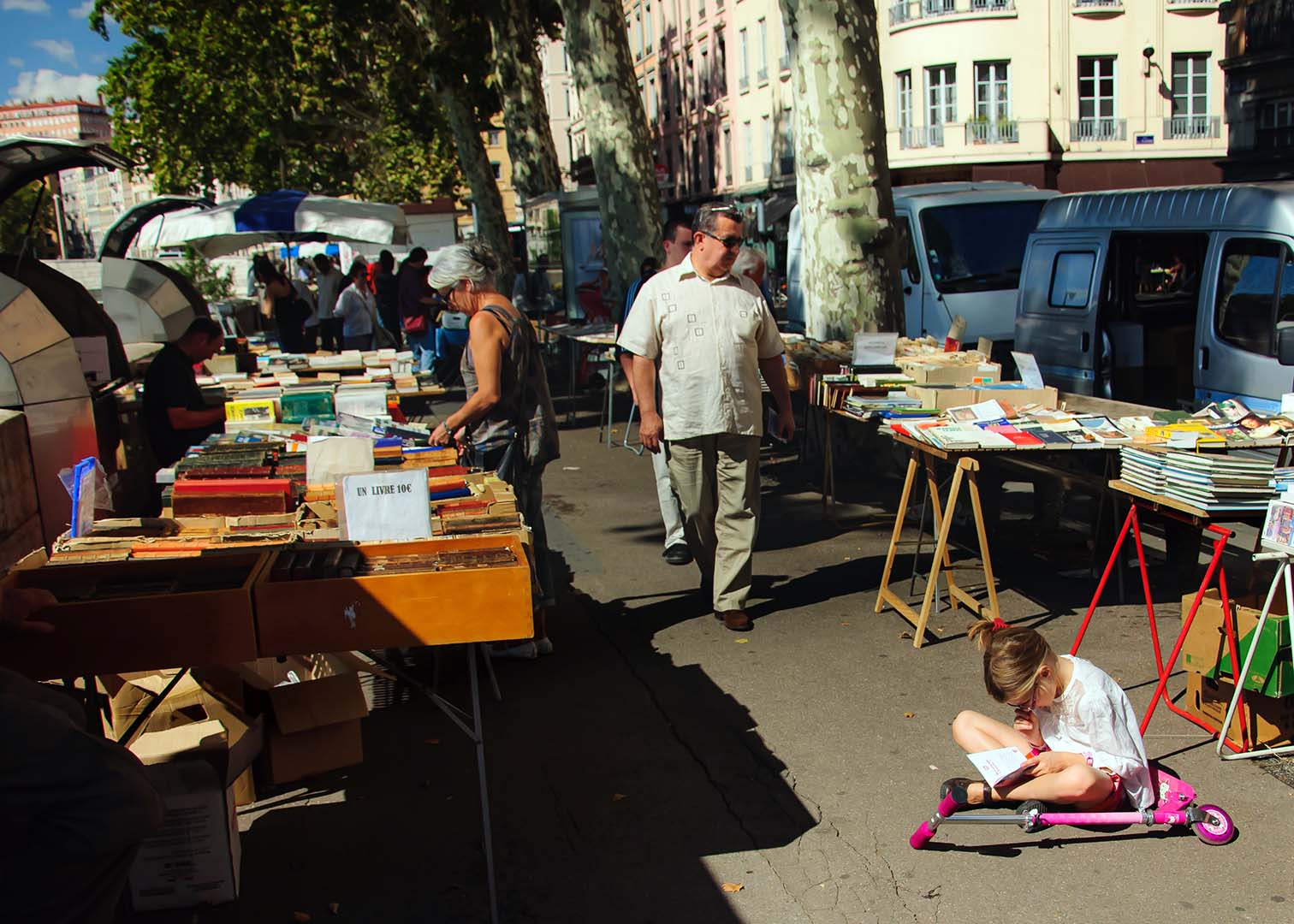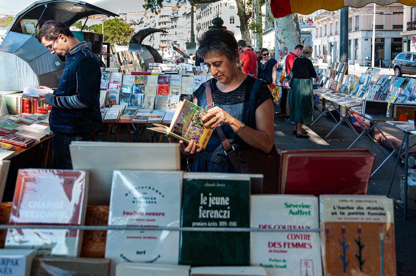 Une autre longue journée : le marché des bouquinistes, sur le Quai des pêcheries, au bord de la Saône… Nous y avons chacun refait le parcours intellectuel d’une vie… ces livres qui ont nourris notre enfance, notre adolescence, notre vie adulte… difficile de résister aux tentations…