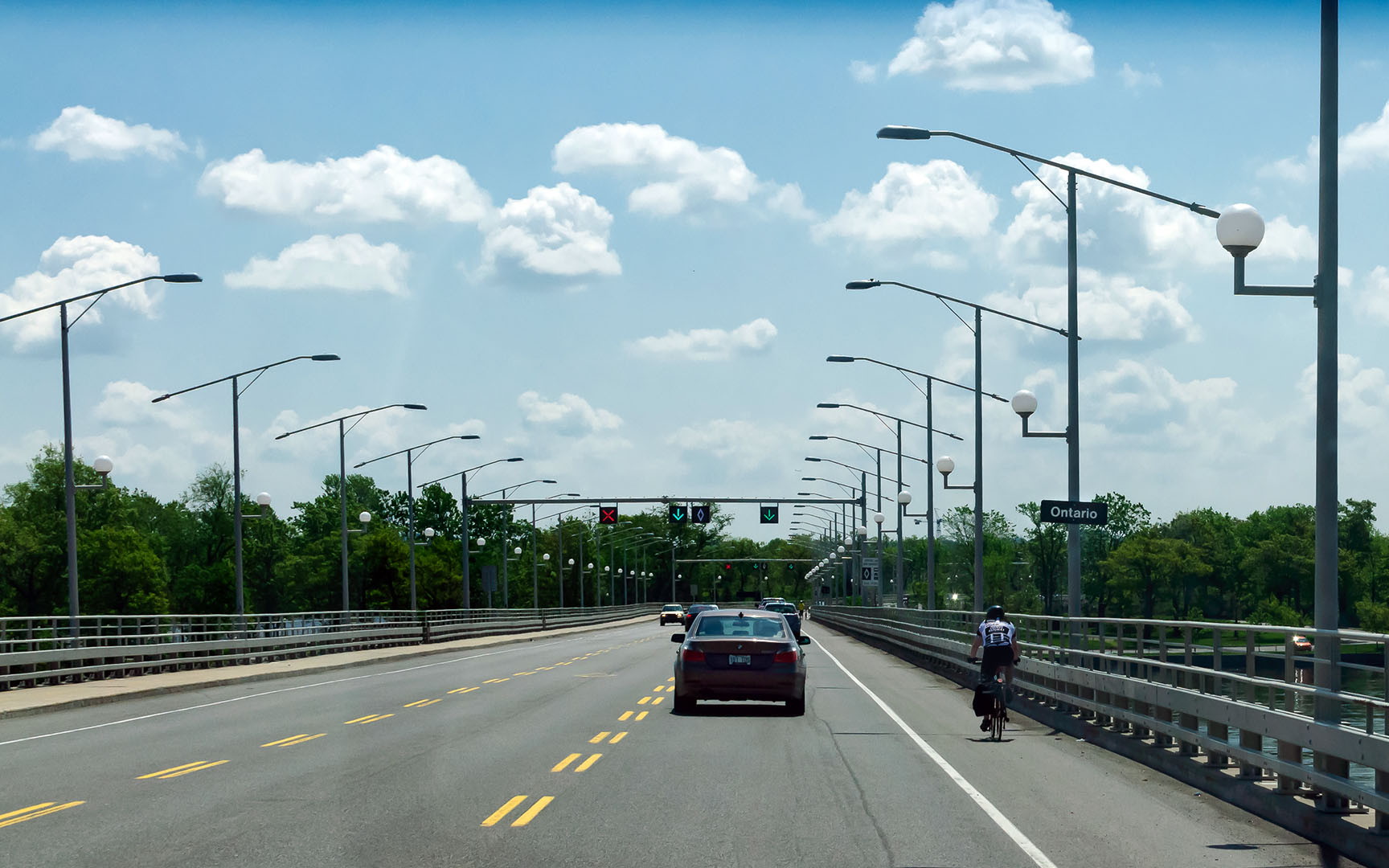 Sur le pont Champlain, à la frontière du Québec et de l’Ontario… le début du voyage