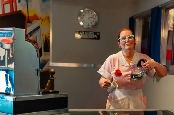 on croirait que le mannequin est vivant, qu’elle nous adresse la parole, en nous versant un café dans un « truck stop » des années 50 et 60.