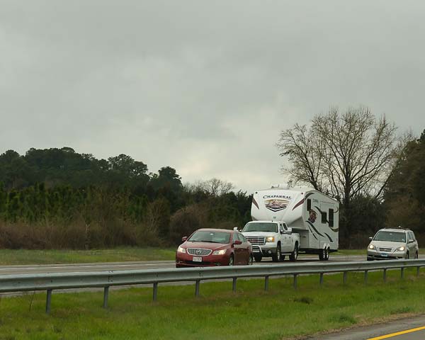 Toute la journée, on observe un flot soutenu et rapide de véhicules récréatifs qui remontent vers le nord.