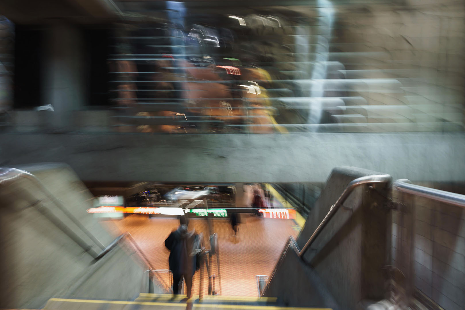 … d’une station de métro à une autre… sur la ligne verte, à la jonction, à deux occasions, de deux lignes, la verte et l’orange, et à la sortie, se retrouver dans une ruelle…