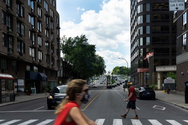 Je décide, en sortant de la bibliothèque, de me promener, pour la première fois depuis la mi-mars, dans les rues du centre de Montréal. J’étais curieux : les reportages dans les médias locaux nous informaient que le centre de Montréal était désert… pas de touristes, peu de flâneurs. Je remonte la rue Saint-Denis jusqu’au Carré Saint-Louis… pratiquement personne sur une rue fermée à la circulation automobile, jusqu’à l’intersection de Sherbrooke… peu et presque pas de circulation, au début de l’après-midi, sur la rue Sherbrooke, une des principales artères de la ville.