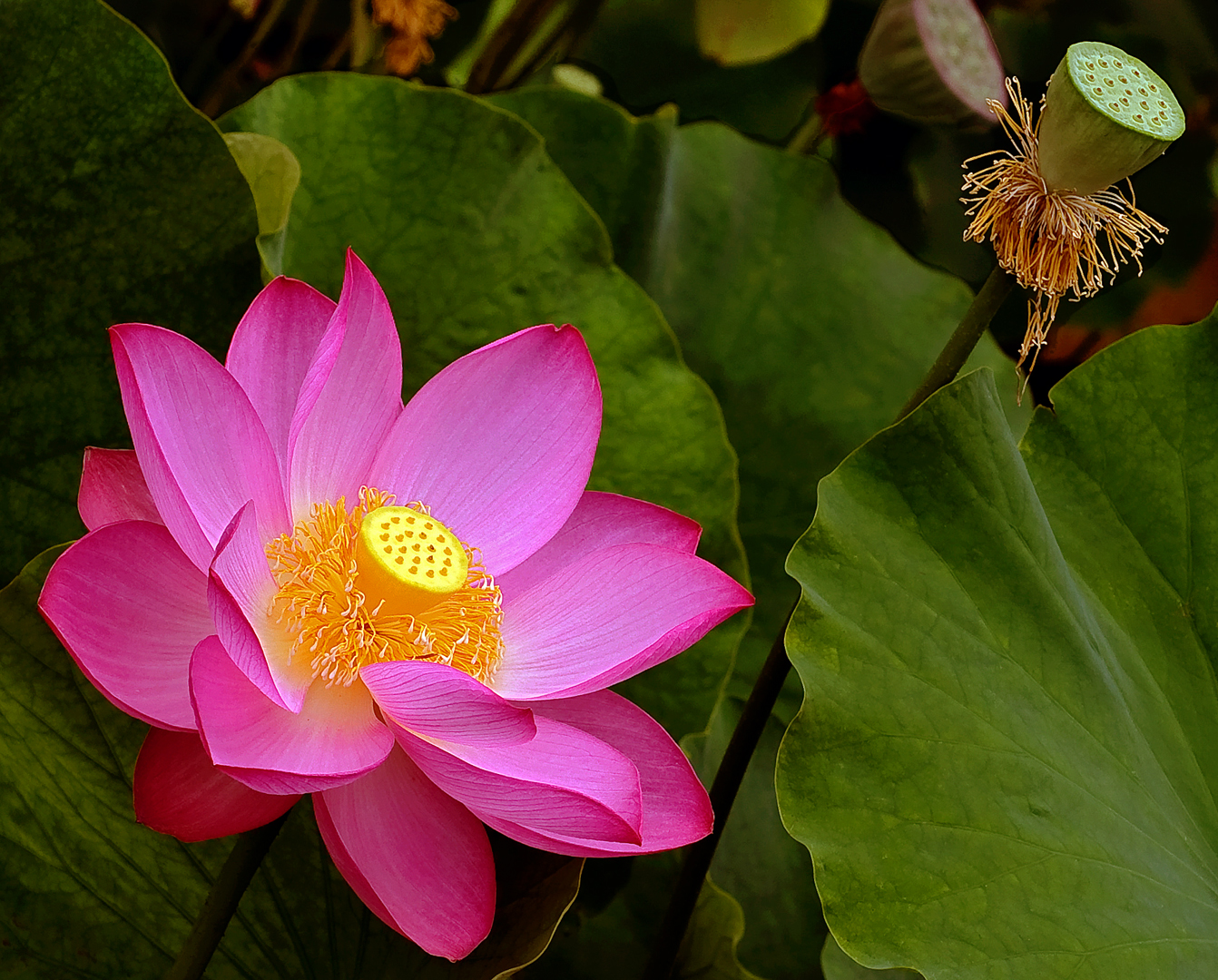 Elles sont resplendissantes à la fin de l’été… jusqu’à ce que les jours deviennent plus courts que la nuit. Alors, les fleurs du lotus d’Orient se défraichissent, se fanent ; leurs belles grandes feuilles se froissent, se détachent, pourrissent dans l’eau, et leurs tiges fléchissent.
