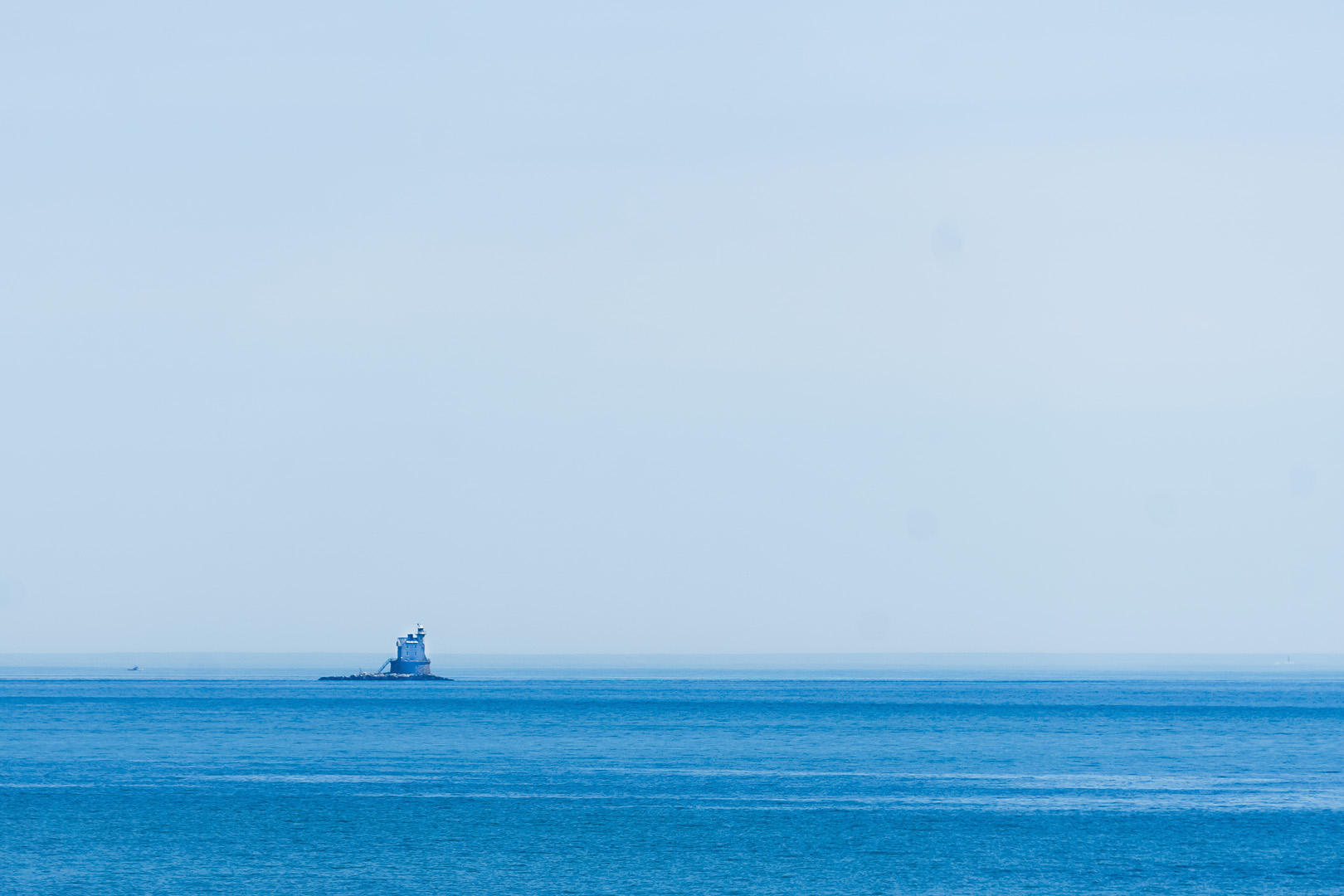 … puis, le phare de Race Rock, sur un rocher qui pointe à l’horizon, au ras de la surface de l’eau, au milieu du détroit de Long Island, tout près de Fishers Island…