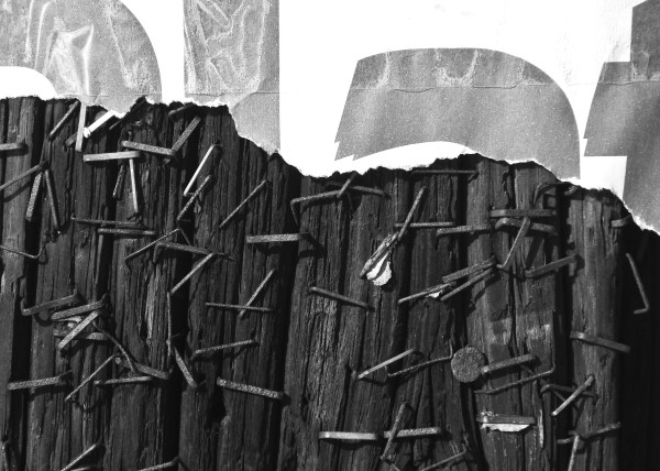 Une gaine de papier-collant enserre une partie de l’affiche sur le poteau de téléphone. Le papier déchiré révèle à l’observateur attentif la dure réalité des marques du temps. J’en déduit qu’il y eut une conférence sur Platon quelque part…